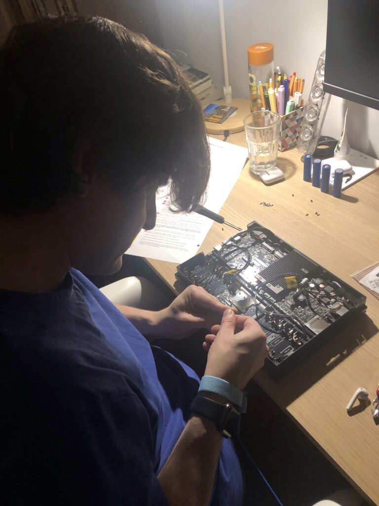 While most steps were clear, there was one that I couldn't figure out about the right way to plug the monitor. Fortunately, all I had to do is open the device again and invert the connector. In total, it took me between 2.5 and 3 hours to get the machine to boot. I swear I hadn't had this much fun with a device in a very long time.